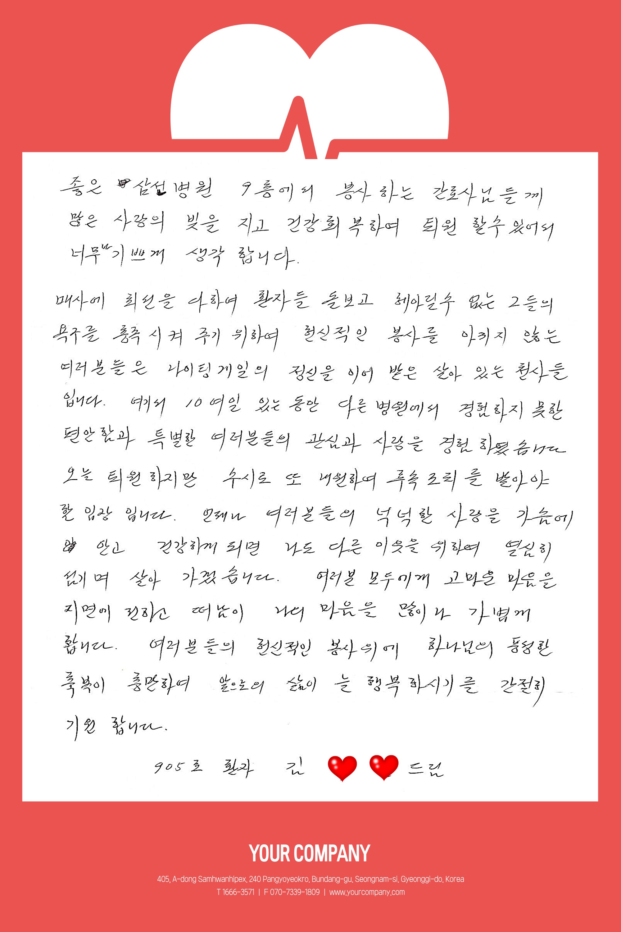 좋은삼선병원 9층 간호사분들께 보내온 감사편지를 소개해드립니다.