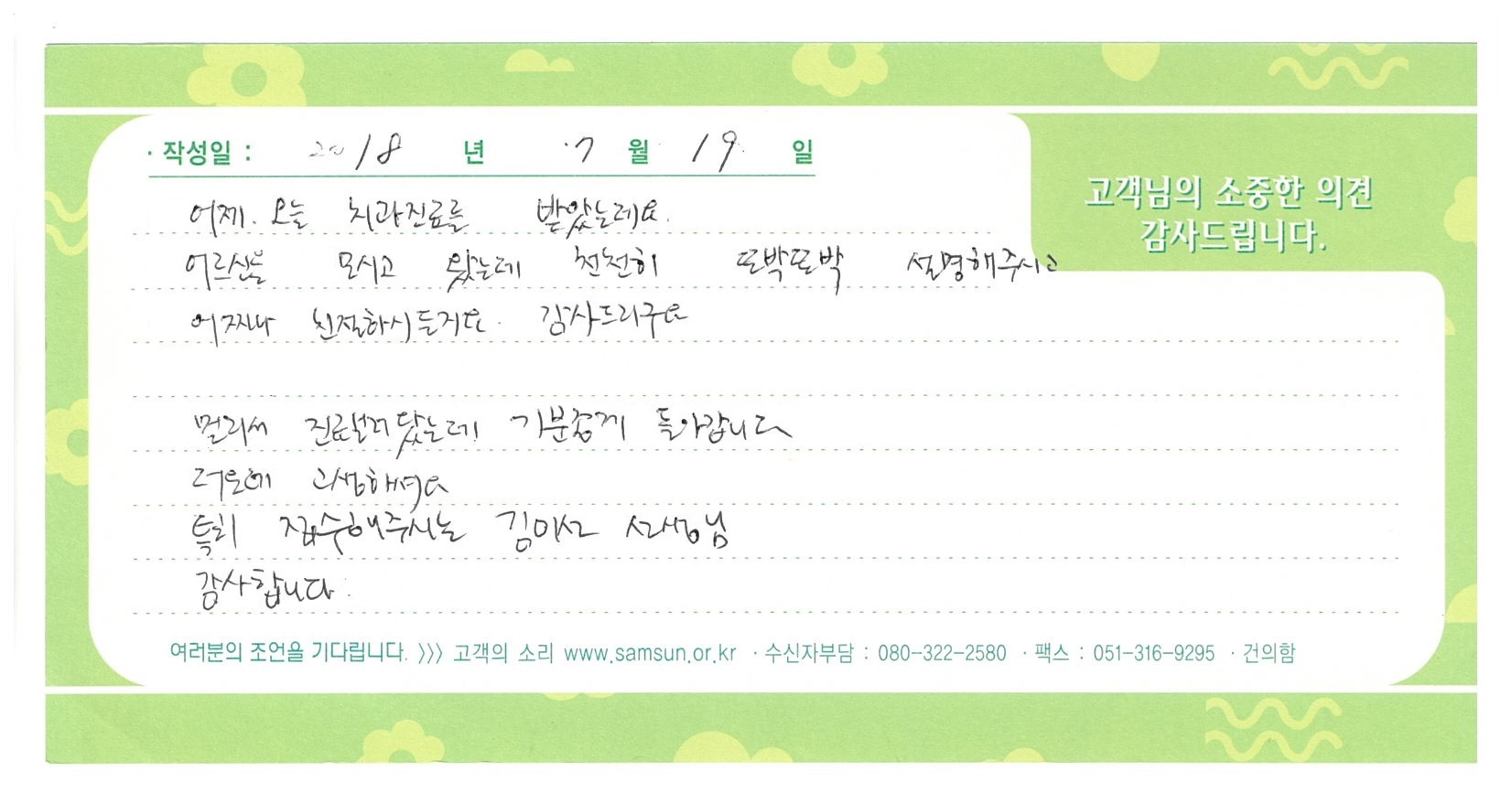 좋은삼선병원 치과 김미선 치위생사 선생님에게 온 감사편지를 소개해드립니다.