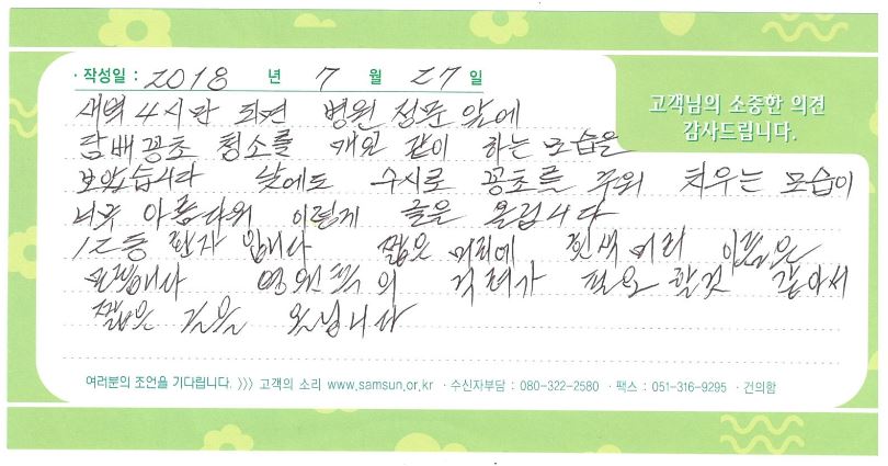 좋은삼선병원 미화부 양소순 반장님에게 온 응원편지를 소개해드립니다.