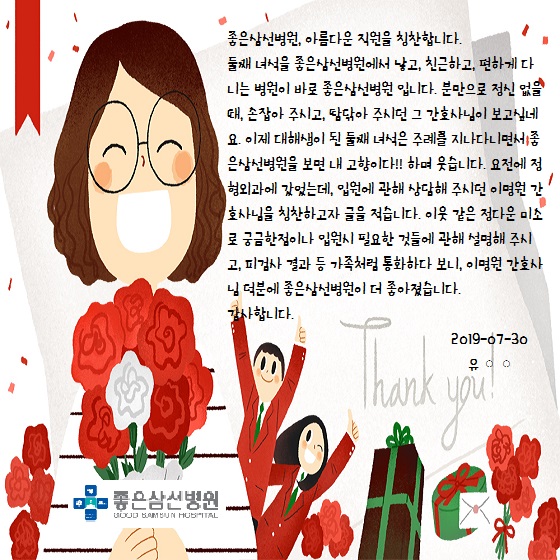 좋은삼선병원, 아름다운 직원을 칭찬합니다.