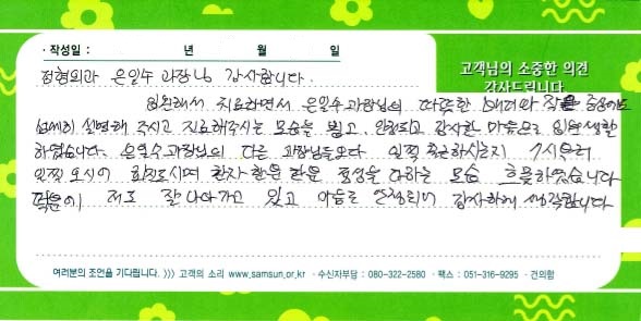입원해서 치료하면서 은일수 과장님의 따뜻한 배려와 작은 증상에도