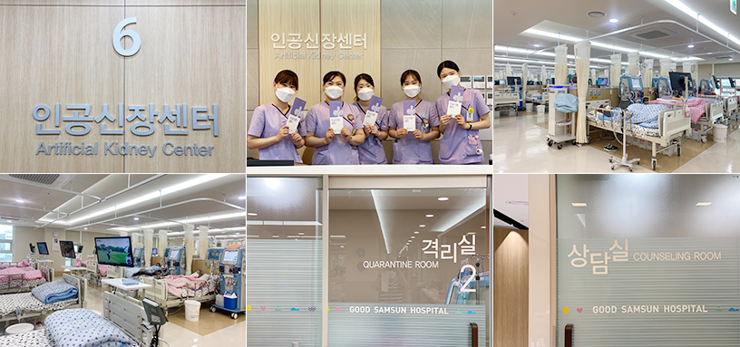 좋은삼선병원 인공신장센터는 만성신부전 등으로 투석을 요하는 지역 환자가 증가함에 따라 투석장비 16대를 추가 도입하여 총 57대를 보유하고 있습니다. 또한 투석환자의 치료 만족도 향상을 위해 최신 혈액 투석장비와 정수시설을 도입하고 개인별 병상 TV를 설치하였으며, 격리 투석실을 별도로 마련하는 등 투석환자의 감염예방에도 신경을 기울이고 있습니다. 앞으로도 좋은삼선병원은 환자 중심의 질 높은 의료서비스를 제공하기 위해 노력하겠습니다.