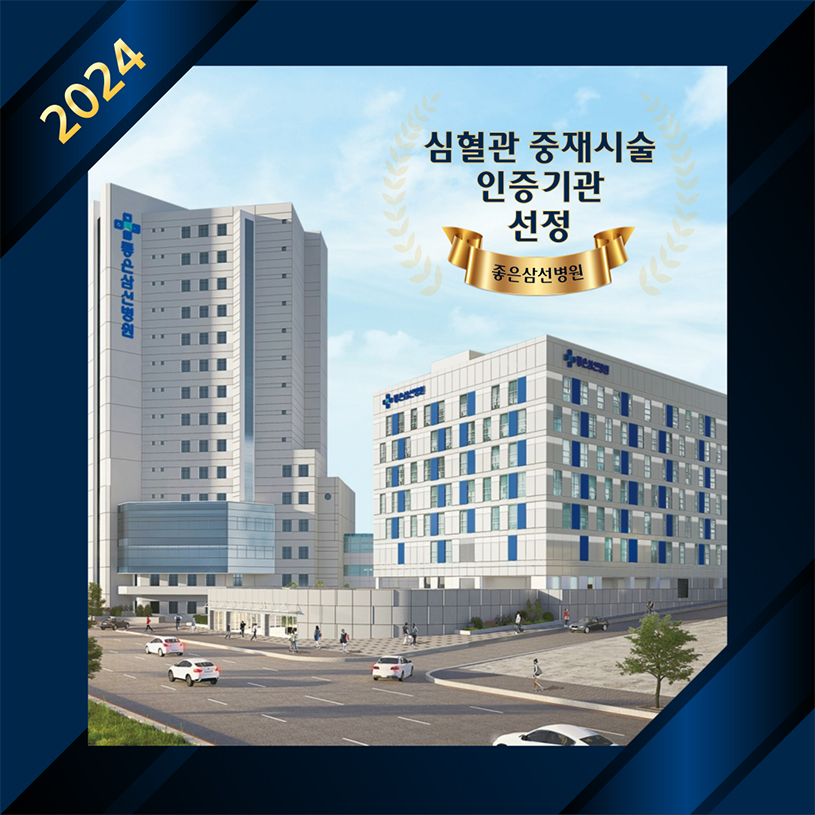 또한 최근 대한심혈관중재학회로부터 ‘심혈관 중재시술 인증기관’으로 선정되었으며, 인증 기간은 오는 7월 28일부터 2029년 7월 27일까지 5년간입니다.
